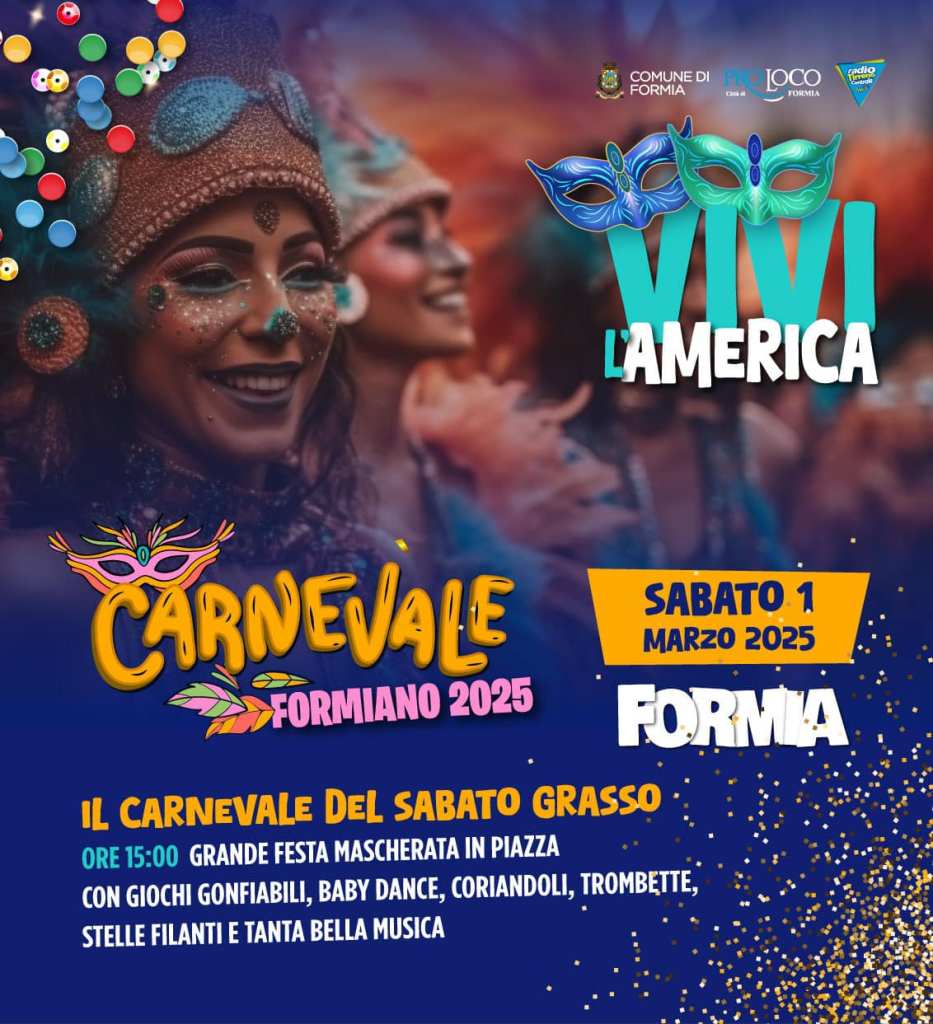 Il Carnevale Formiano 2025 si preannuncia come un evento imperdibile, ricco di colori, musica e divertimento! Quest’anno il tema è “Vivi l’America”, e le celebrazioni si svolgeranno dal 1° al 4 marzo, con una serie di eventi che coinvolgeranno tutta la comunità. Ecco il programma dettagliato!