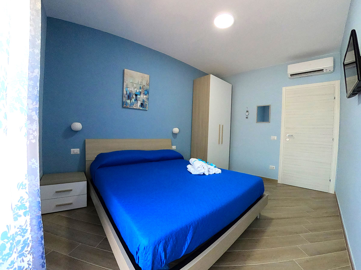 Camera matrimoniale: Letto matrimoniale, biancheria, comodini, guardaroba, bagno privato