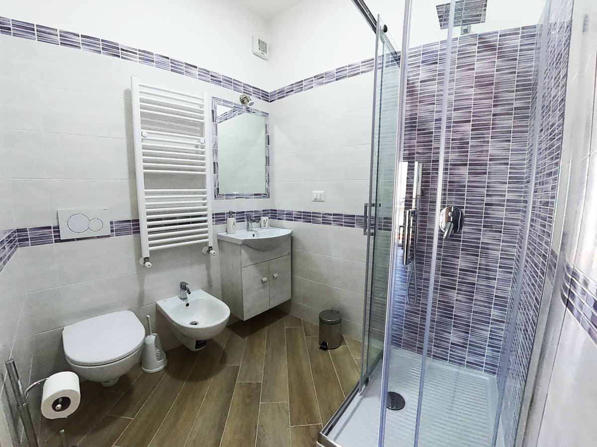 Camera tripla: letto matrimoniale, divano letto, comodini, guardaroba, bagno privato
