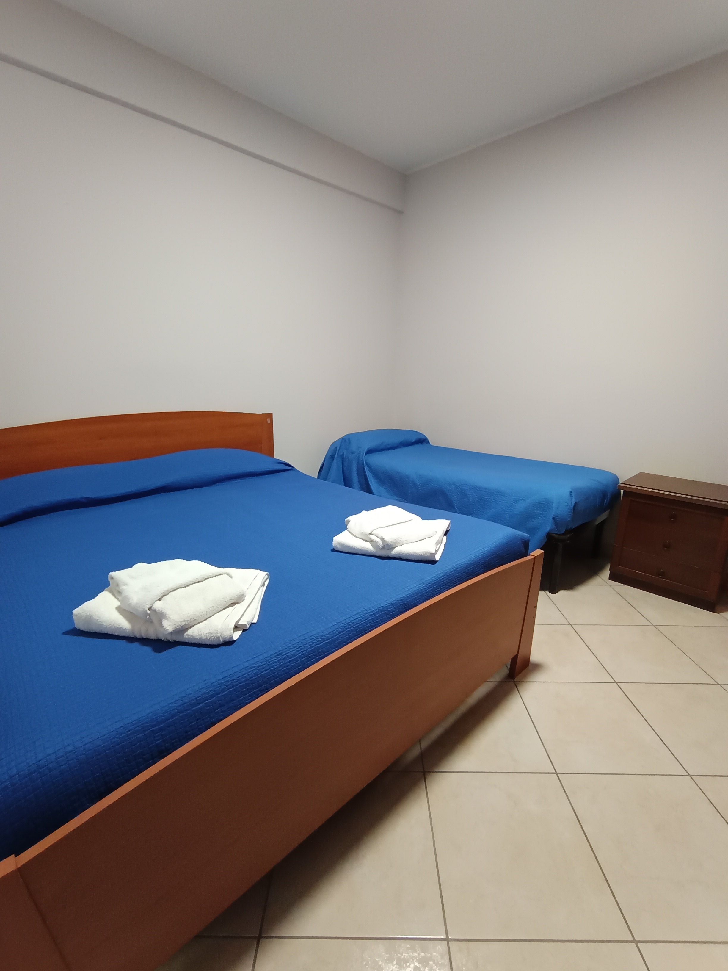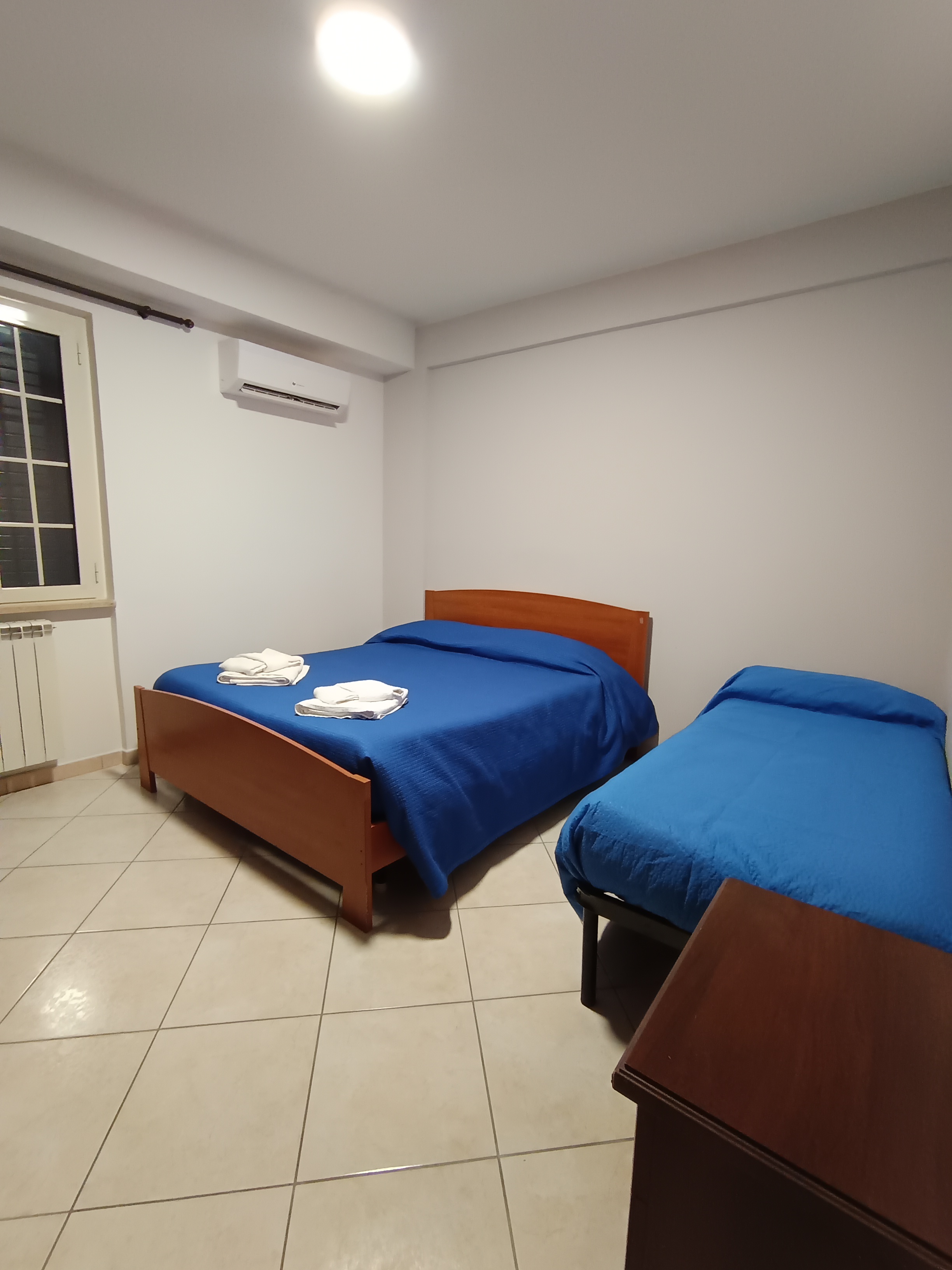 II Camera matrimoniale: Letto matrimoniale, Lettino singolo, biancheria, comodini, guardaroba, climatizzatore.