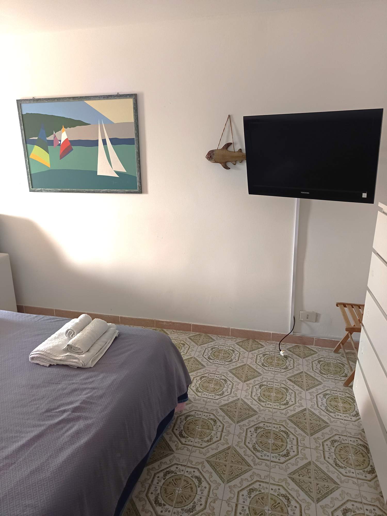Cameretta : Due letti, biancheria, comodini, guardaroba, climatizzatore, TV.